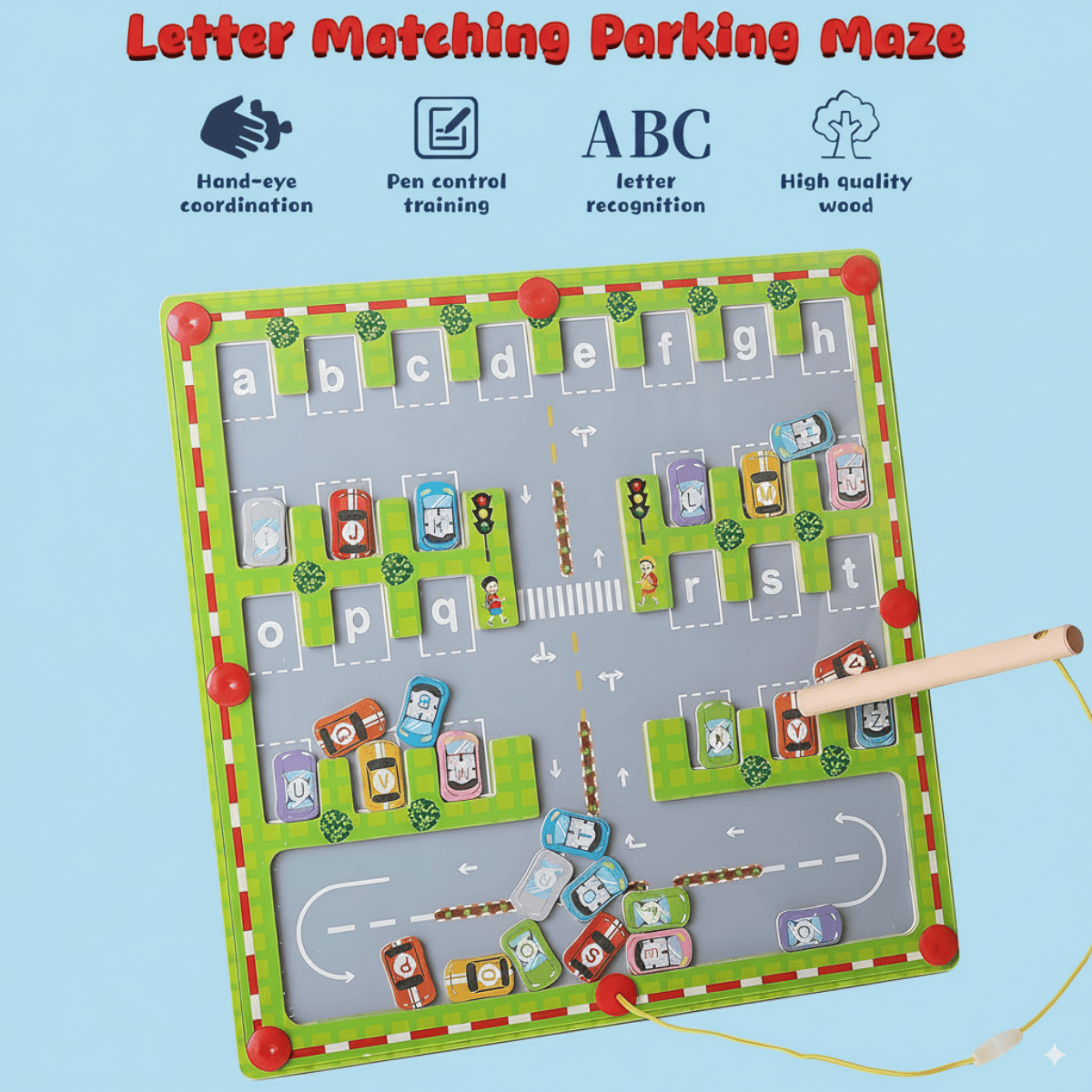 BrightX Alphabet Car Parking Maze Board Game for Kids A-Z